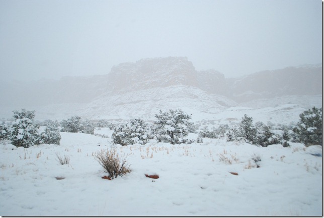 Our adventures in Utah were among one of Bilbo’s favorite experiences of the entire trip. Lucky for him, Moab had only been the beginning; there were still three National Parks to see and an historical town to bed down in before we checked Utah off the list! Lucky for you, we took lots of pictures. Now grab a snow cap, because your “virtual tour” of Utah’s splendor begins with a snowy drive through Capital Reef National Park.